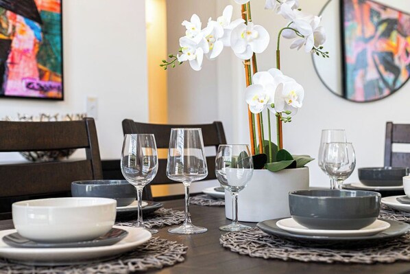 The kitchen comes complete with modern appliances, cookware, and utensils. Whether you're preparing a quick breakfast before heading to the theme parks or cooking a family dinner, you'll find everything you need to make and enjoy a delicious meal during your stay. Enjoy the convenience and flexibility of having a home-cooked meal away from home. There is a breakfast bar with stools, and just off the kitchen is a cozy nook, both the perfect settings for a casual breakfast, or savouring your morning coffee as yo plans the day’s adventures.