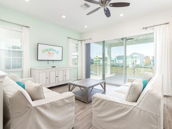 Entrando in questo accogliente cottage a due piani, troverete il soggiorno, che conduce nella sala da pranzo, con la cucina adagiata sulla sinistra della sala da pranzo. Calcia i piedi e rilassati nella zona giorno dopo una giornata di sfreccianti via di nuovo a Margaritaville. Riunisciti nella sala da pranzo per gustare un buon pasto in famiglia, forse la tua versione del cheeseburger firma in paradiso. Il tuo macchinista surgelato si troverà nella cucina completamente attrezzata, che include tutti gli utensili, gli elettrodomestici e le pentole necessarie per creare i tuoi piatti preferiti e le bevande ghiacciate durante le vacanze. Esci dal lanai privato, accessibile dalla sala da pranzo, che offre un'atmosfera pittoresca per godersi un sacco di tempo per la famiglia. C'è un mezzo bagno aggiuntivo collegato al lanai per la vostra convenienza.