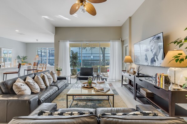 The fully equipped kitchen boasts modern appliances, ample counter space, and a spacious dining area. Prepare gourmet meals or quick snacks to keep your energy up for the theme park adventures.