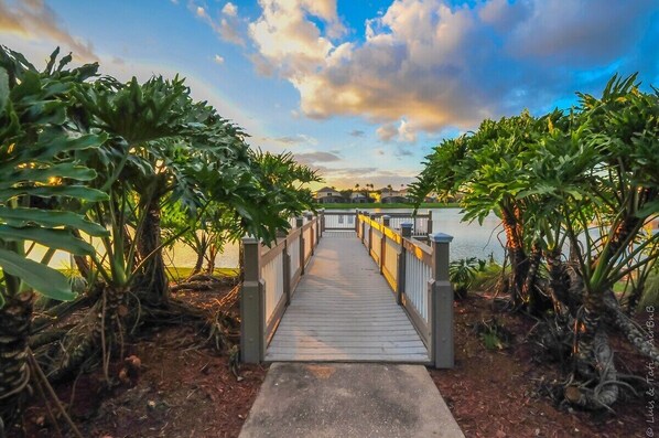 Our private pool offers a beautiful background of the resort's main lake with lots of nature and birds.