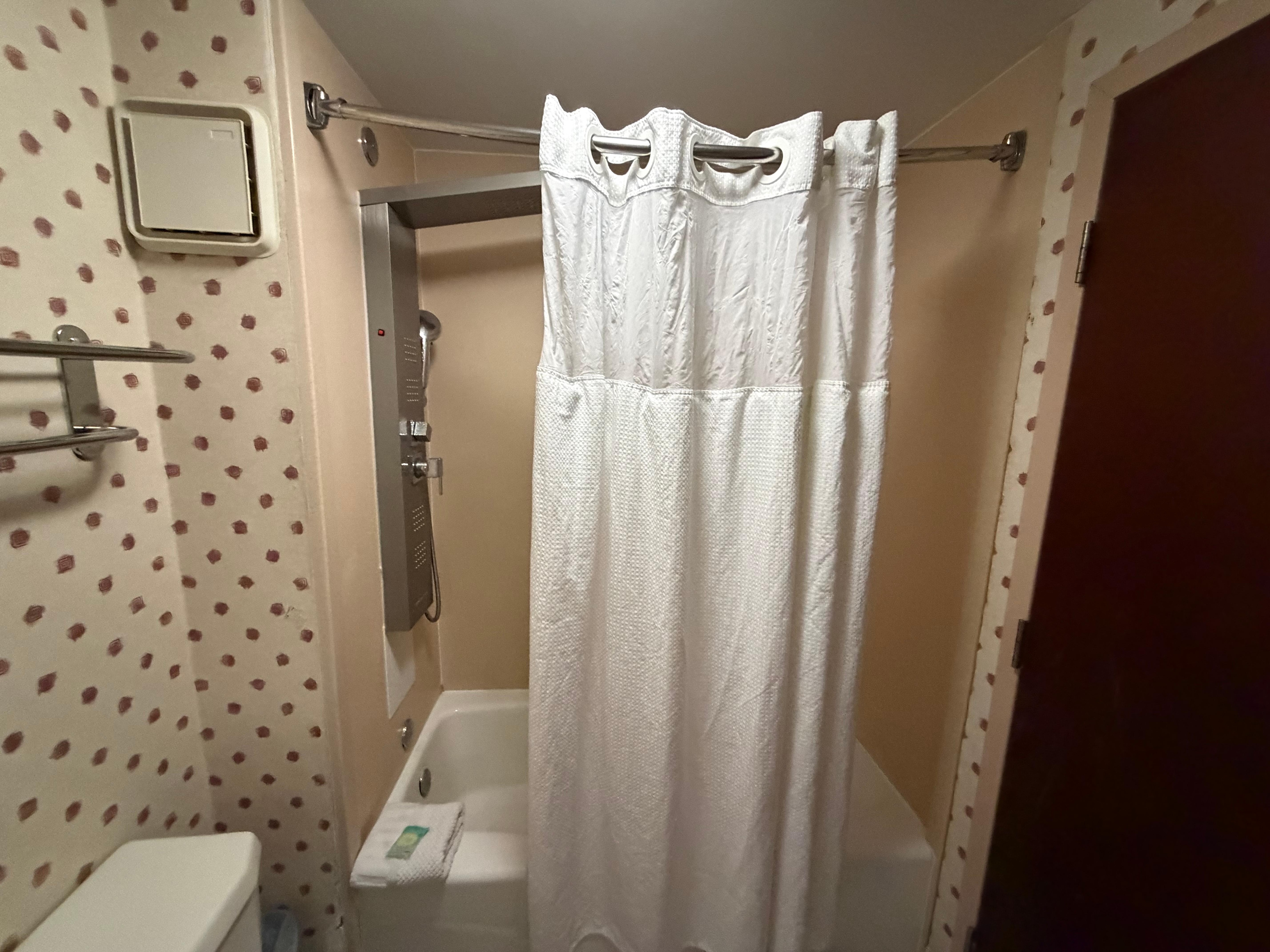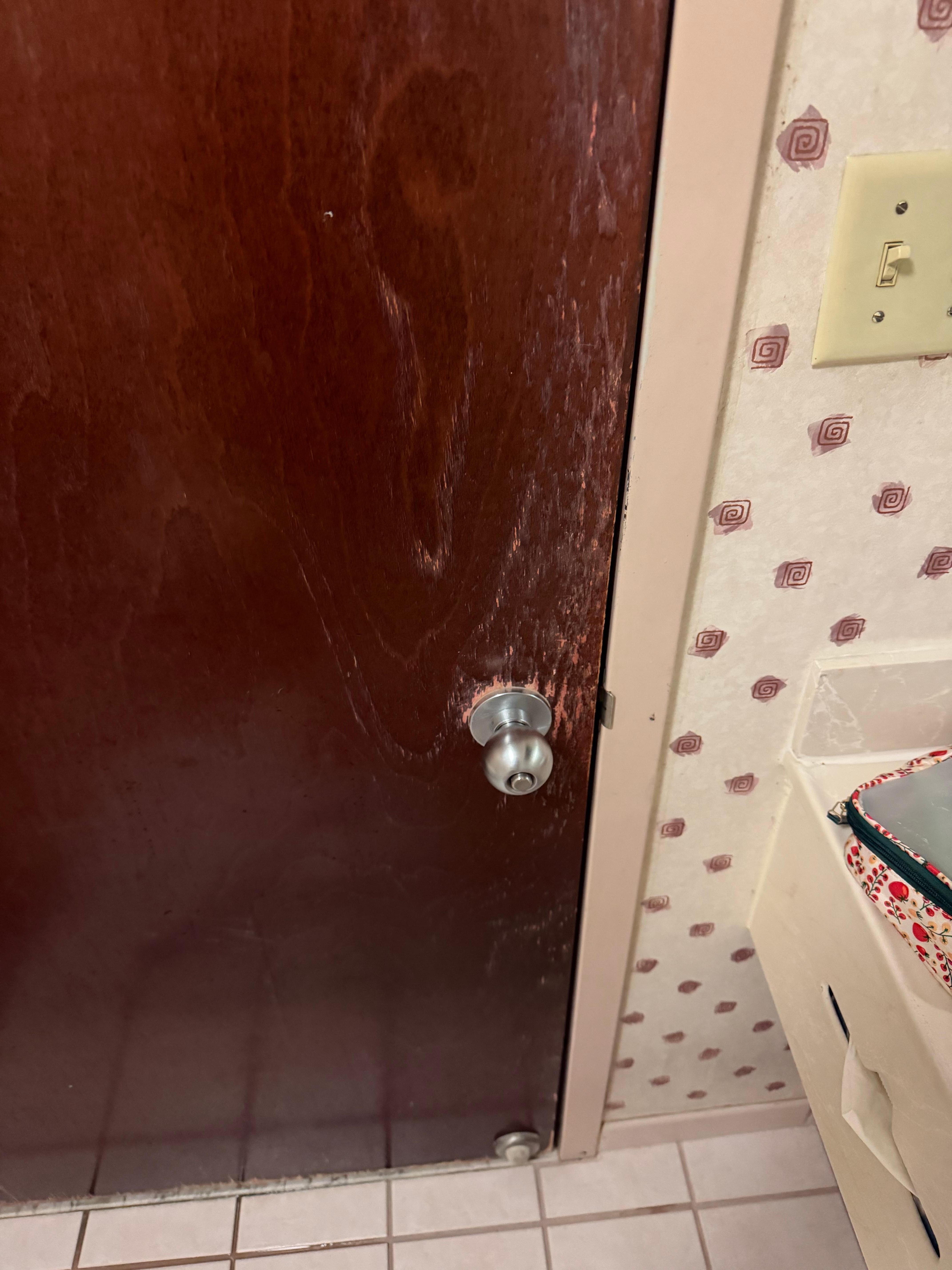 The room was so outdated. All of the doors and walls were scuffed. The bathroom light only worked half of the time and hesitated to even turn on when it did. The shower curtain was too small for the shower and unable to close, the room smelled musty, and the switch to the lights next to the beds didn’t work, someone had unscrewed the lightbulbs to turn them off and on….