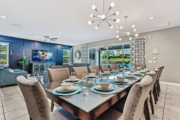 This exceptional 11-bedroom villa is the ideal getaway for multiple families vacationing together or for unforgettable large family gatherings. Located in one of Orlando’s premier resort communities just minutes from Disney, the home sits on a spacious corner lot, offering added privacy and ample room for outdoor games and relaxation.