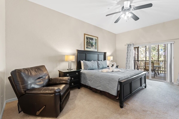 This huge unit is on 3rd floor and has awesome views of the lake that you can enjoy from the private balcony. Huge master suite has a king bed and big bathroom with double sink, shower and tub. There are 2 other rooms, that share a second bathroom. One with queen bed and one with 2 twin beds, all with TVs. Kitchen has been upgraded with granite countertops and brand new appliaces and is fully equipped and open to a dining and living room area. There is a laundry room with washer and dryer in this unit and a high chair and pack and play for the little ones. Free WIFI and parking.