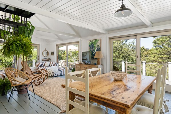 We had a great stay at this cottage. The private community beach was amazing! Looking north, you can see the seriously over crowded public beach and realize just how good you have it on the private beach. We enjoyed eating meals on the deck and watching the wildlife, (turkeys, fox, deer and many birds). Many seals spotted at the beach too! AC in the cabin works almost too good, we were cold every time it kicked on and ended up adjusting the thermostat higher than we normally would. The downstairs bathroom was huge and we greatly enjoyed the spacious shower with large showerhead. On site full size laundry machines were a big plus for us, as we were able to pack less clothes. The neighborhood has very lightly traveled gravel roads with 10mph speed limit. We felt safe letting our 8 year old ride his bike around a limited area near the house.