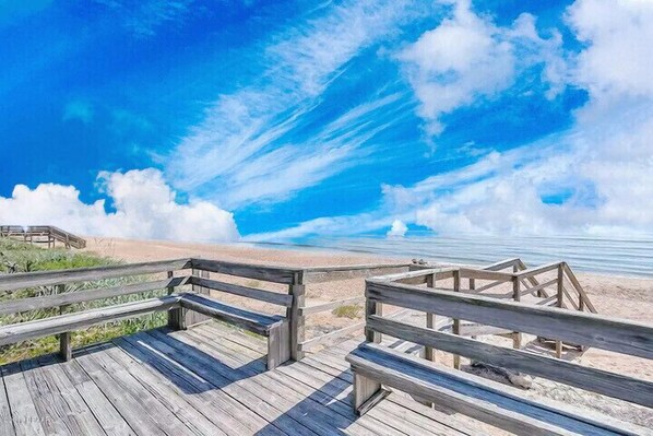 The beach access is conveniently located out the front door as this unit is only 2 down from the beach. Garage parking for 1 car. Park out front walk through condo out the back sliding door to the pool. A perfect location and no elevators to deal with!