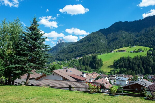Soggiornando in questo appartamento si ha accesso al carinissimo giardino di casa, il quale essendo rivolto a Sud, consente di rilassarsi sotto il sole delle Dolomiti, ammirando la vista mozzafiato sul Sassolungo e sul Gruppo del Sella.