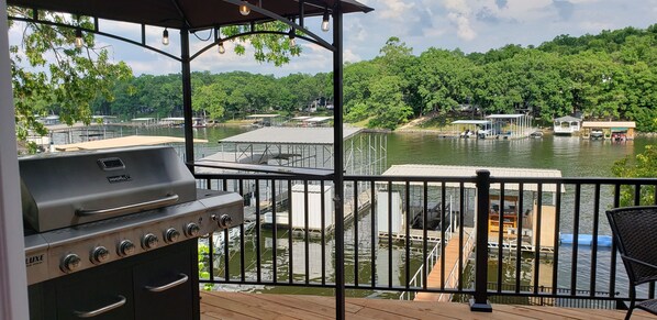 This property is perfect. A wonderful location near all of the fun places on and off the lake. The house itself has plenty of space and the owners go above and beyond to provide nearly everything you could ever need. The dock and decks and patios are beautiful and have plenty of seating. Our pontoon fit perfectly in the slip. The beds were comfortable and the wifi was strong. Overall, we were all impressed and can't wait to come back!