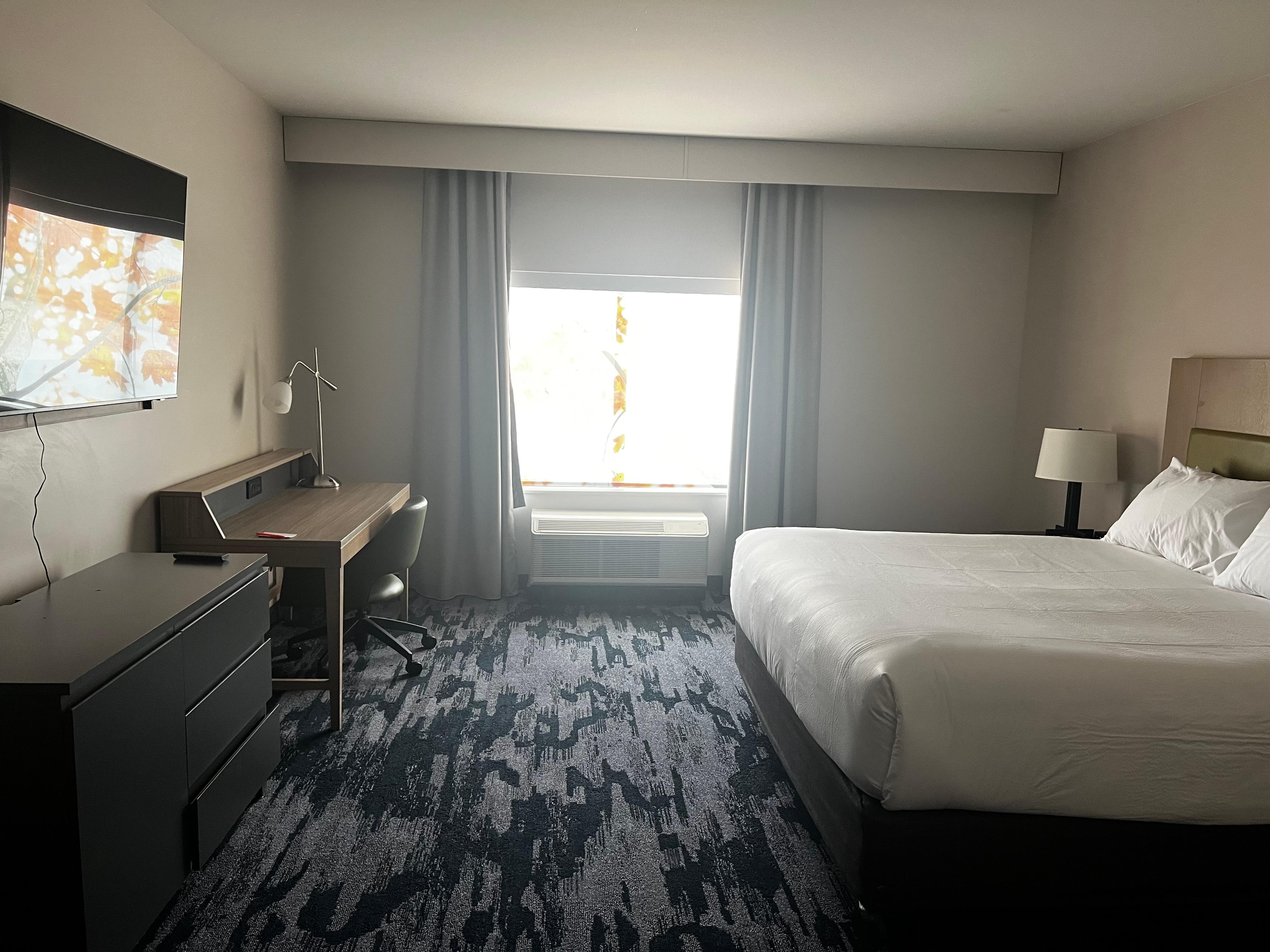 This hotel seemed to be nice except they were in the process of remodeling everything. The TV didn’t work never own curtains piled up outside our door and overall it just looked like a construction area. The owner did fix the TV but they were unsuccessful. The bed however, was amazing. That was amazing shower amazing to overall if they weren’t remodeling and it didn’t look like they’re remodeling it would’ve been a better stay.