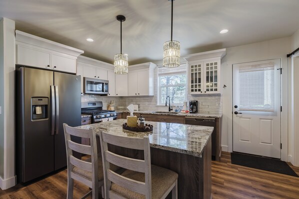 Kitchen Details - Love to cook or just want the option? The fully equipped kitchen features modern appliances, ample prep space, and everything you need to whip up a meal, enjoy takeout, or set the table for a cozy dinner in.