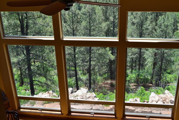 La stanza principale è un muro di 6 grandi finestre che si affacciano sul canyon. È progettato per farti sentire come se fossi seduto nel canyon.