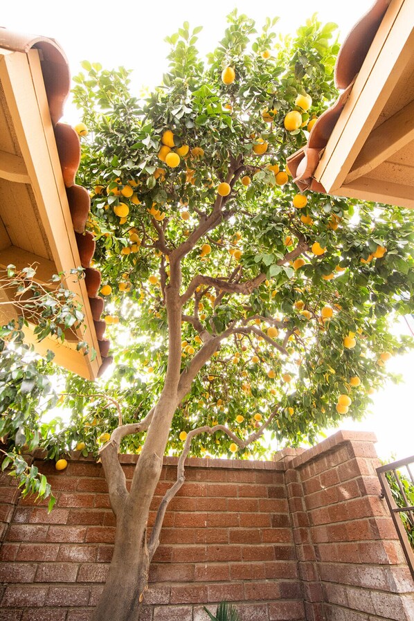Our North facing property is the coolest of all three of our properties, as the master bedroom and living space is in the shade most of the year. The entry patio offers sunny mornings into the afternoon.