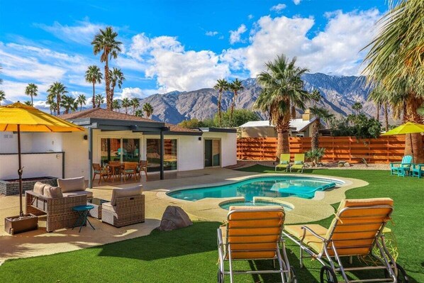 You and your friends will soak up the sun and mountain views alike at this classic Palm Springs home. Enjoy a cool swim in your own private pool or grill something delicious on the private gas BBQ.