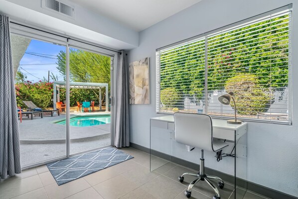 Very comfortable, well appointed, and beautifully decorated home. Would work great for 3 couples. Multiple seating areas around pool, BBQ (didn't use), plenty of floats. Quiet neighborhood, close to DTPS (10 min drive). Property Manager/Owner was incredibly responsive to an issue we had that was resolved quickly. We would definitely stay here again.