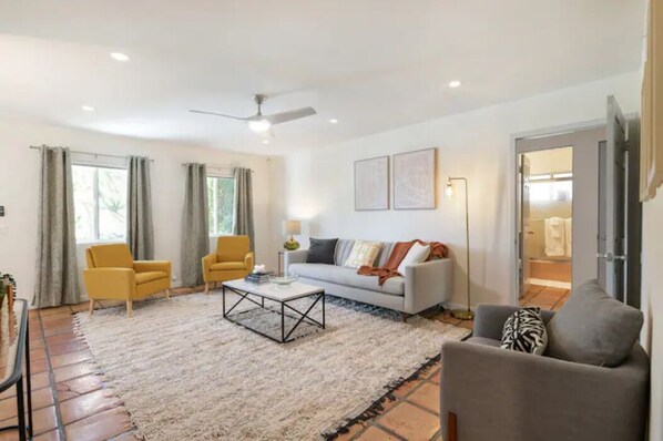 An inviting living room and state-of-the-art kitchen with a comprehensive housewares package encompass the main social spaces and are great for entertaining. This home has 4 private bedrooms and 2 full bathrooms - all with upscale finishes – that allow for alone time away from the group as needed. Add in the fact this residence is both child and pet friendly, and you find everything here is perfect for a weekend escape or much-needed vacation to a comfortable Cali stay.