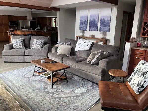 The Snurfer House was a pleasure to stay at. Everything was clean and organized. Beds were comfy. We had enough rooms for our unmarrieds to each have their own. Daughter enjoyed the tub in the upstairs bath; big fan of the rain shower in the master bath! Amenities like fire pit and hot tub were nice to know about, but we did not take advantage since it was so hot! Thank you for opening your house to guests!
