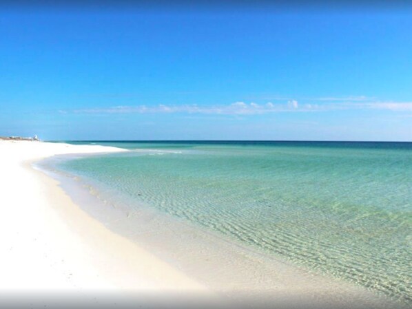 A soli 100 metri dal cancello posteriore privato di Wally e Marimac si trova l'accesso a livello (senza gradini per salire) a una delle spiagge più belle d'America. Questo è sul lato sud di Hwy 30-A, il che significa che non ci sono strade da attraversare per la spiaggia. Questo è particolarmente utile per la sicurezza dei bambini.
