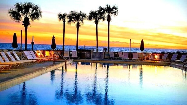 Dunes of Panama is located in the heart of Panama City Beach, FL, offers everything you need for a perfect getaway! Just steps away from the white sand beaches and blue water of the Gulf Shores. There is even a beach chair vendor on site. With THREE oceanfront pools, one of which is heated, plenty of lounges and children's activities everyday, the whole family will love being outside. Help yourselves to the BBQ grills, gazebos, swings and 2 fire pits! Guests can enjoy food and cocktails from Stingray's located right on the resort. Spending the day at the pool? Cool off with a quick drink or snack from Stingrays's Sneaky Tiki snack bar. Dunes of Panama also features a full Fitness Center on property. Lighted tennis courts so you can enjoy late evening or early morning games. You'll also be able to enjoy a multitude of activities like volleyball, basketball, cornhole and shuffleboard right here on the resort - There truly is something for everyone! The resort is surrounded by tons of great restaurants, shopping and water sports and activities to play all day. You have everything you need for a perfect vacation!