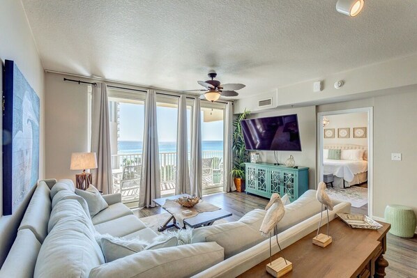 Offriamo questa unità aggiornata e perfettamente arredata al 10 ° piano, con 1 camera matrimoniale e zona a castello, 2 bagni e piastrelle in tutto. Non avrai bisogno di niente dato che abbiamo tutto qui per te! Inizia la tua giornata facendo colazione nella cucina rinnovata, con nuovi elettrodomestici e contatori di granito. Completamente rifornito con tutti i piccoli elettrodomestici e utensili di cui si potrebbe aver bisogno, è possibile preparare i pasti qui o andare in uno dei numerosi ristoranti locali nelle vicinanze. Il bar per la colazione può ospitare 3 persone con ulteriori posti a sedere e si affaccia sulla vostra spaziosa zona giorno. La grande TV a schermo piatto è perfetta per le serate cinematografiche e tonnellate di luce entrano dalle grandi finestre che conducono al tuo balcone con vista sulle spiagge del Golfo e sulla piscina del resort. Questa unità ha anche una propria lavatrice e asciugatrice.