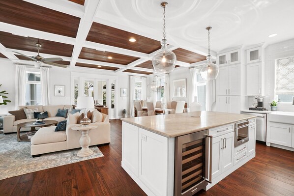 Gourmet Kitchen & Living Area — beautifully designed and decorated, opening onto a covered veranda with outdoor kitchen and patio for alfresco dining