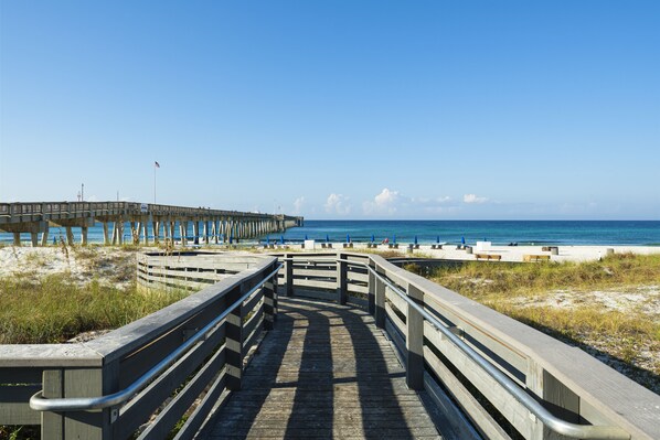 If you want to get out on the water, you can rent a pontoon boat or jet ski right across the lagoon. You can also use our provided inflatable paddle boards on the lagoon, or at the amazing St. Andrews State Park, which is just a short drive away. Be sure to check out a sunset or dolphin cruise over at Captain Anderson Marina. The opportunities are endless!