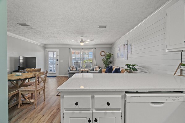 Enjoy a fresh, coastal interior with all-new furniture. The living area features a comfy sleeper sofa and built-in bunk beds, perfect for kids. Step out onto your private balcony and enjoy the ocean breeze after a long beach day.