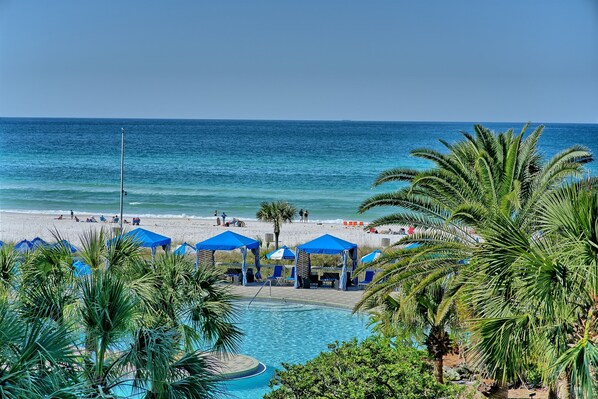 Edgewater is a perfectly placed, centrally located resort along Panama City Beach, with tons of amenities in either direction. Edgewater Beach & Golf Resort is the only full-service resort in Panama City Beach. Come golf at the Gulf of Mexico! Edgewater features a par-3 executive golf course, basketball hoops, pickleball, shuffleboard, and tennis facilities. Pier Park is minutes to the west and St. Andrew’s State Park is to the east. There are plenty of local shopping and restaurants located close to Edgewater, including Fire Fly, Dee’s Hangout, American Charlies among others located within walking distance.