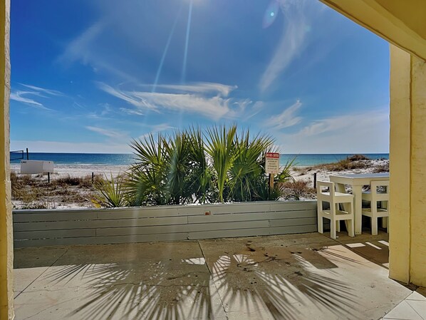 I loved this place because it wasn’t so big. We were on the ground floor. We was able to walk out and see the beach from 2 doors. One in the living room and the other was in the bedroom! Open the blinds and see the beach as well. This place has 2 bathrooms. It was just perfect and we are def looking forward to renting this same unit in the future.