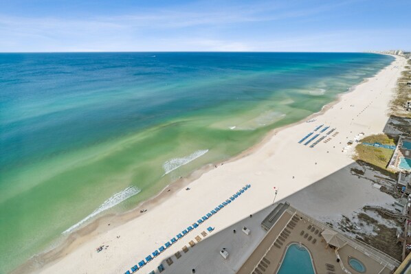 The resort itself boasts many amenities; pool, hot tub, fitness center, bar, beach access (this unit features complimentary beach service of two chairs and an umbrella for your whole stay) , you will feel right at home on your PCB vacation.