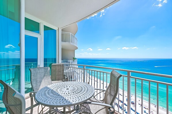 The best of all is the well designed balcony that curves around the building, so you have an outstanding view of each angle of the beach. Relax and take the most out of your vacation!
