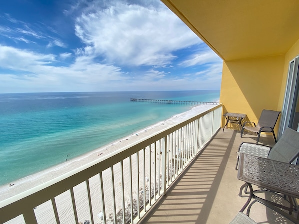 The sunsets from our 15th floor balcony will take your breath away!! Be soothed by the sound of the waves. Watch a family of dolphins play just offshore. Take a stroll in the sugar white sand. Swim in one of our tower-length beachside pools.