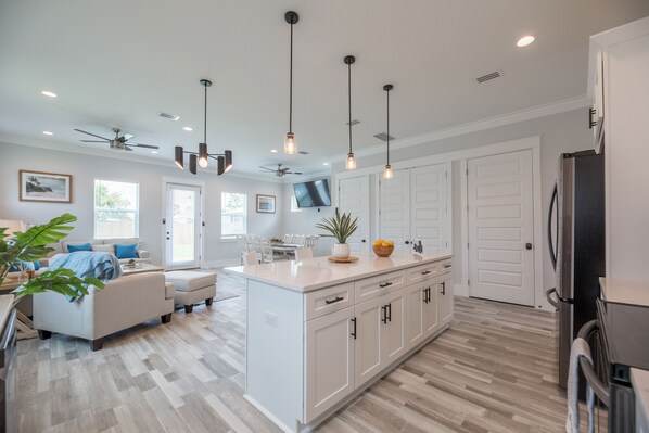 Newly built and furnished in modern coastal style, with its open floor plan and plenty of space to spread out, this property is perfect for family gatherings, entertaining or unwinding after long day on the beach!