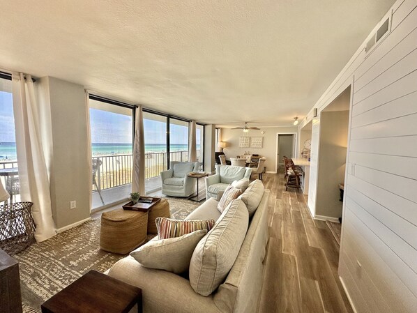 With 60' of wall to wall glass- you get an unobstructed view of the world's most beautiful beaches. Each room is Gulf front (except bathrooms). You can't beat this view!