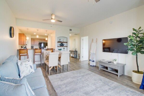 Step out onto your private balcony to take in the scenery or unwind in the spacious living area with a top-grade queen sleeper sofa that ensures maximum comfort. The private king bedroom provides a peaceful escape, while the full kitchen with an ice maker makes it easy to prepare meals and drinks at your convenience.