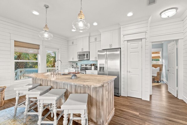 The house was very clean and centrally located. Easy access to beach just across 30A. Kitchen is well stocked with utensils, dishes.