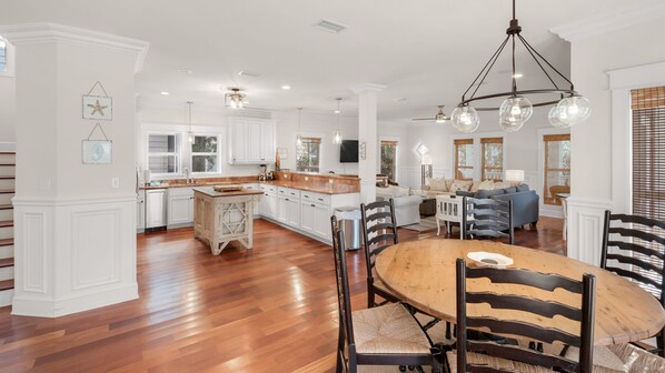 The main living area is a wide open concept place with plenty of room for relaxation, dining and gathering with family. 2 bedrooms are on the 1st Floor, with the other 2 upstairs. The 3rd floor loft includes a convenient wet bar, perfect for making a cocktail before heading out on the balcony. From here you'll enjoy a bird's eye view of the neighborhood and 30A. There's plenty of room in this home to sleep up to 17 guests - perfect for multi-family and friend groups.