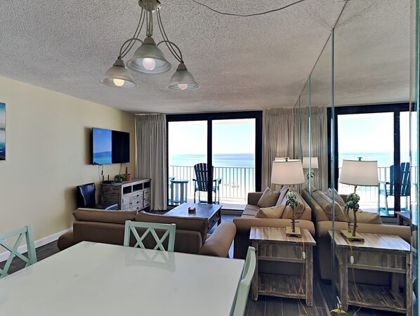 Welcome to Edgewater Windward #305, a beautiful one-bedroom, two-bathroom Gulf front condo in Panama City Beach, Florida. This inviting retreat sleeps four and offers spectacular views of the shoreline from its private balcony. With floor-to-ceiling windows, a comfortably furnished living space, and the convenience of an in-unit washer and dryer, this condo is the perfect setting for a relaxing beach escape.