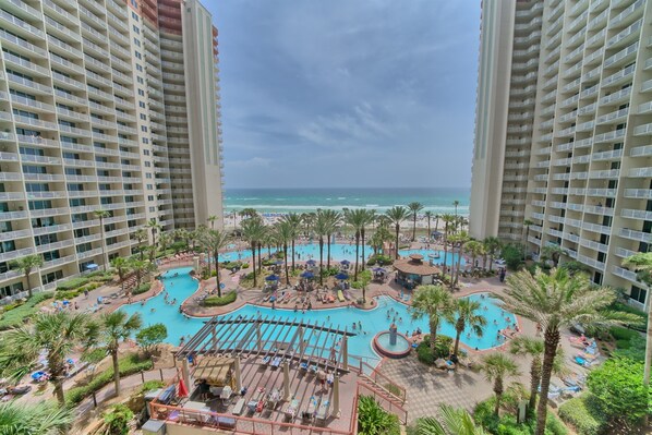 This condo was perfect for a family of four. Very clean and equipped with everything you need. The view was amazing. The second bedroom was extremely small and felt like you were in the closet, but it worked for our teenage daughter. We did not spend a ton of time in the condo so it didn’t bother her. Just would keep if you are trying to put multiple kids in the room it will not work. Our teenage son stayed on the couch since the room was tiny and he said the couch was comfortable so it worked. The master bedroom was huge and had an amazing view. The king bed was very comfortable. The balcony had an amazing view and was very large. We enjoyed breakfast on the balcony. The food and bars next the pool was very good. I would say it is normal resort prices. Having pineapple willies next-door with the refillable cups for slushy’s was awesome. The staff are very friendly and accommodating. The resort area by the pools was very clean and we enjoyed many days in the sun by the pools. Beach was a very short walk just through a pool gate. The location was perfect many things in walking distance. We enjoyed PCB pizza, Parlour Doughnuts, Wicked Wheel, Pink pelican ice cream and Sharky’s. The pier is a short drive to a huge mall that my teenagers loved shopping at! There is plenty of things to do on the strip. My husband and I enjoyed one night out at Coyote Ugly that was crossed the street and that was a blast. Overall we have a great trip and will be back!
