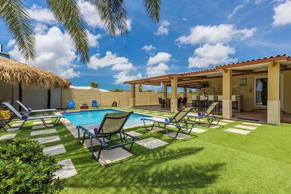 Private Pool Paradise – Take a refreshing dip in the large private pool or lounge under the sun with a tropical drink in hand!
