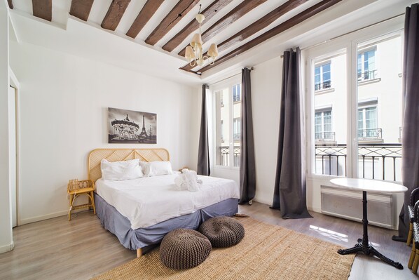 Located in the heart of PARIS, in the district of Montorgueil, on the 4st floor of a typical Parisian building, beautiful and cozy with air conditioning apartment in perfect condition, exposed beams, parquet floor, fully equipped (kitchen, shower, WC, internet, TV, micro wave). Ideally located, you can visit Paris by foot. Many grocery stores, bars and a restaurant are located near the apartment. Ideal apartment for a tourist stay or for a business trip. Located in the heart of Paris, in the district of Montorgueil, on the 4st floor of a typically Parisian building, beautiful and cozy apartment with air conditioning in perfect condition, exposed beams, parquet floor, fully equipped (kitchen, shower, WC, internet, TV, micro wave). Ideally located, you can visit Paris by foot. Many grocery stores, bars and a restaurant are located near the apartment. Ideal apartment for a tourist stay or for a business trip. The area is pedestrian during the week and its main attraction is the Montorgueil market street with its restaurants, bars and trendy boutiques. Many theaters are 5 minutes from the apartment Transports Metro "Sentier" ligne 3 Metro "Strasbourg saint Denis" Métro" Bonnes nouvelles" From Orly Airport , you can taxe a taxi (35€) or the orly bus stop to "Montparnasse", take the metro line 4 and stop "Réaumur Sebastopol" (9 stops) 12€. From Roissy CDG airport : taxi (45€) or the Roissy Bus to "opéra" (45 minutes/11€) ant Metro to "Sentier" (3 stops) From Gare du Nord Station, you take the metro to "Réaumur Sébastopol" 4 stops (10mn)