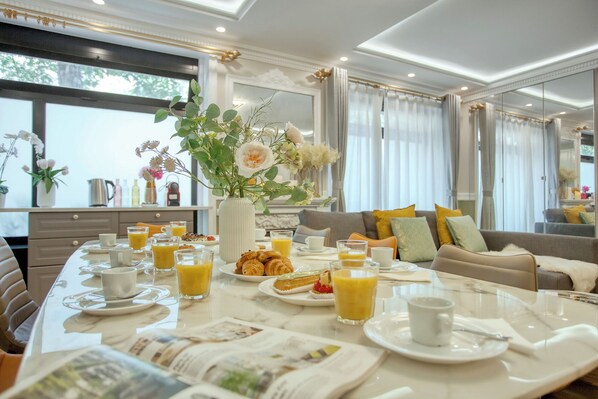 Come live a waking dream in our prestigious property. We offer you a high-end stay where everything has been designed for your comfort and well-being. You'll arrive at an immaculate accommodation, thoroughly cleaned before your arrival and after your departure by a professional team. You'll also be delighted with the quality of the provided linens, all soft and high-end. Beds will be made upon your arrival, with 2 ultra-comfortable pillowcases for each person. Each guest will also have a large towel and a hair towel. Shower gel, shampoo, and a hairdryer will also be at your disposal for an even more enjoyable stay. Indulge in this dream travel experience in our prestigious property.