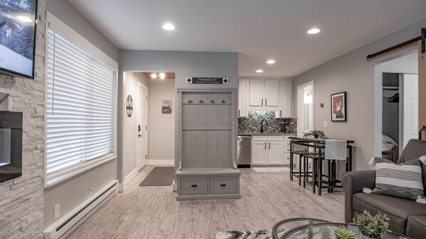 Completely remodeled 1 bedroom/1 bath condo in Hidden Creek at Canyons village, located on the main level! Great location with only a 4 minute walk to Cabriolet/open gondola (or Frostwood Lift) by Waldorf Astoria), that takes you to the base of the mountain. During the winter months, there's a few free shuttle services (High Valley Transit, CV Connect, CVMA, Electric Xpress) that can pick you up at the parking lot and transport guests most anywhere within Canyons Resort Village including to the base of the ski lifts. Be sure to download any of the shuttle services apps. This is our first property, and everything is brand new! New king bed with new mattress, new queen memory foam mattress for the sofa sleeper, all new linens, sheets, blankets, etc. Remodel includes new walk-in shower, countertops, sinks, faucets, furniture, you name it! Approx 600 sq ft in size, with large smart TVs in the bedroom and living room, Cable tv, wifi, fireplace, full kitchen with all new appliances, new washer/dryer combo, and ski/snowboard rack. Hot tub is open year round, and pool is open seasonally. with an access code.