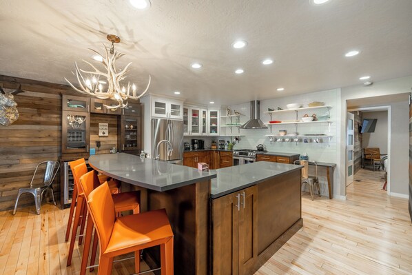 Cucina: cucina gourmet completa con bar incorporato con vino / birra frigorifero. waffle, padella elettrica, 5 fuochi, frullatore, microonde, crockpot, Keurig, e tutti i comfort di casa!