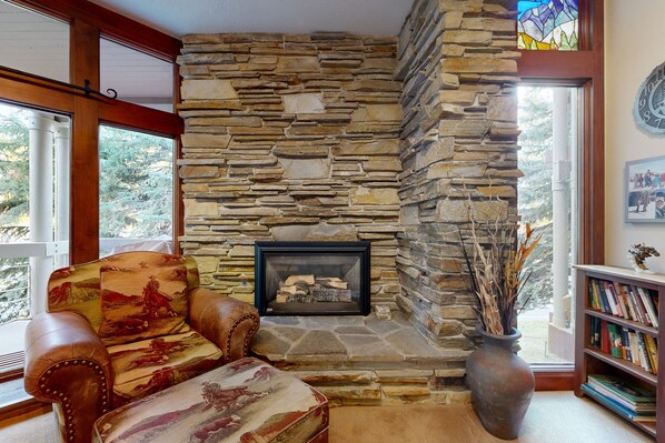 Enjoy the mountain air on a spacious balcony. Fire up the gas grill or unwind with a cup of coffee on a patio set with seating. Soak in the six-seat private hot tub while taking in lovely mountain ski run views.