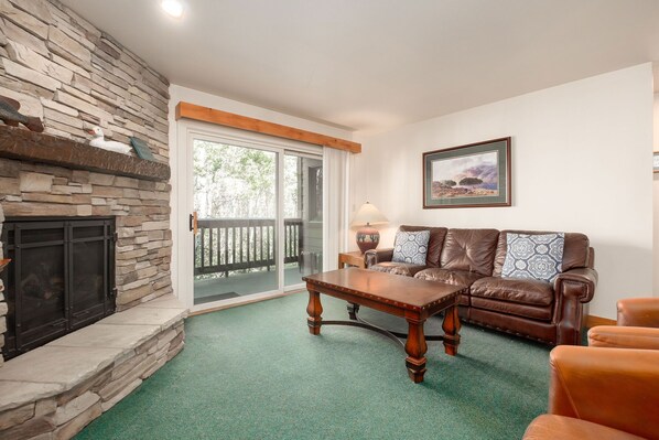 Condo amenities include comfortable duvets, a private balcony, gas fireplace, a wall safe, and hairdryers in each bathroom.