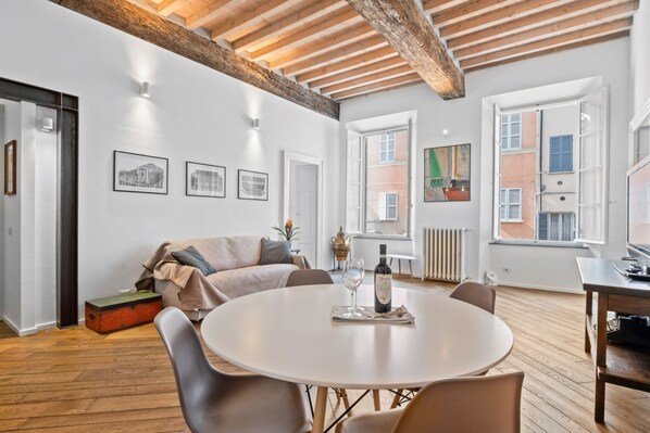 Ampio e tranquillo appartamento di 80 mq, in grado di ospitare comodamente fino a 4 persone, situato al primo piano di un palazzo storico (risalente a fine ‘500) senza ascensore. La proprietà si trova nel cuore del centro storico di Parma (ZTL), a pochi passi dai principali monumenti della città, come il Duomo, il Palazzo della Pilotta e il Teatro Regio.