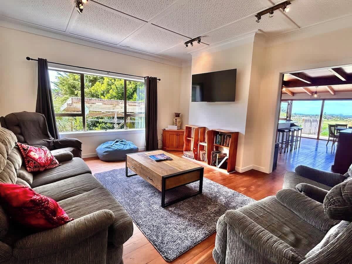 BEACHFRONT holiday home with stunning views& modern comforts -1h35 from Auckland
