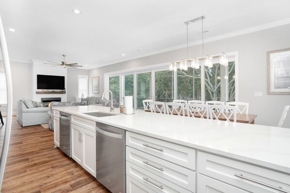 This custom-built and professionally decorated home features high-end finishes throughout with all the desirable amenities for an unforgettable vacation. A short walk to the beach exposes the hidden gem of North Litchfield beach. This gorgeous home, aka 'Easy Like Sunday Morning' offers six suites with private bathrooms to accommodate 18 guests comfortably. Everyone will have room to spread out, as even the bunk beds were custom-designed to fit four queen beds. The large living space opens onto a spacious screened porch overlooking the fenced backyard to accommodate those guests with dogs. Two levels of screened porches off the back of the home and a covered front porch allow for unlimited outdoor time, whether sipping coffee in the morning or resting with a book. You and your guests can enjoy a cocktail at the contemporary wet bar that features a second refrigerator, wine chiller, and ice maker. A fully equipped kitchen makes preparing and serving meals a breeze. Sit back, relax and enjoy the outdoor bar with cable tv and grill while relaxing by the private 31’ x 15’ private swimming pool. Optional seasonal pool available (pool heat fee applies). Sundays are always better at the beach! Please see our Pet Policy that applies to all Pet-friendly homes, which is strictly enforced.
