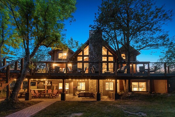 Spend the day fly fishing just steps from the deck, catching crawdads in the shallows, or geode hunting along the riverbank. Come evening, gather around the fire pit or slip into the hot tub beneath a sky full of stars. Indoors, a cozy great room welcomes card games, shared meals, and good conversation, while the game room keeps everyone entertained with ping pong, poker, and air hockey.