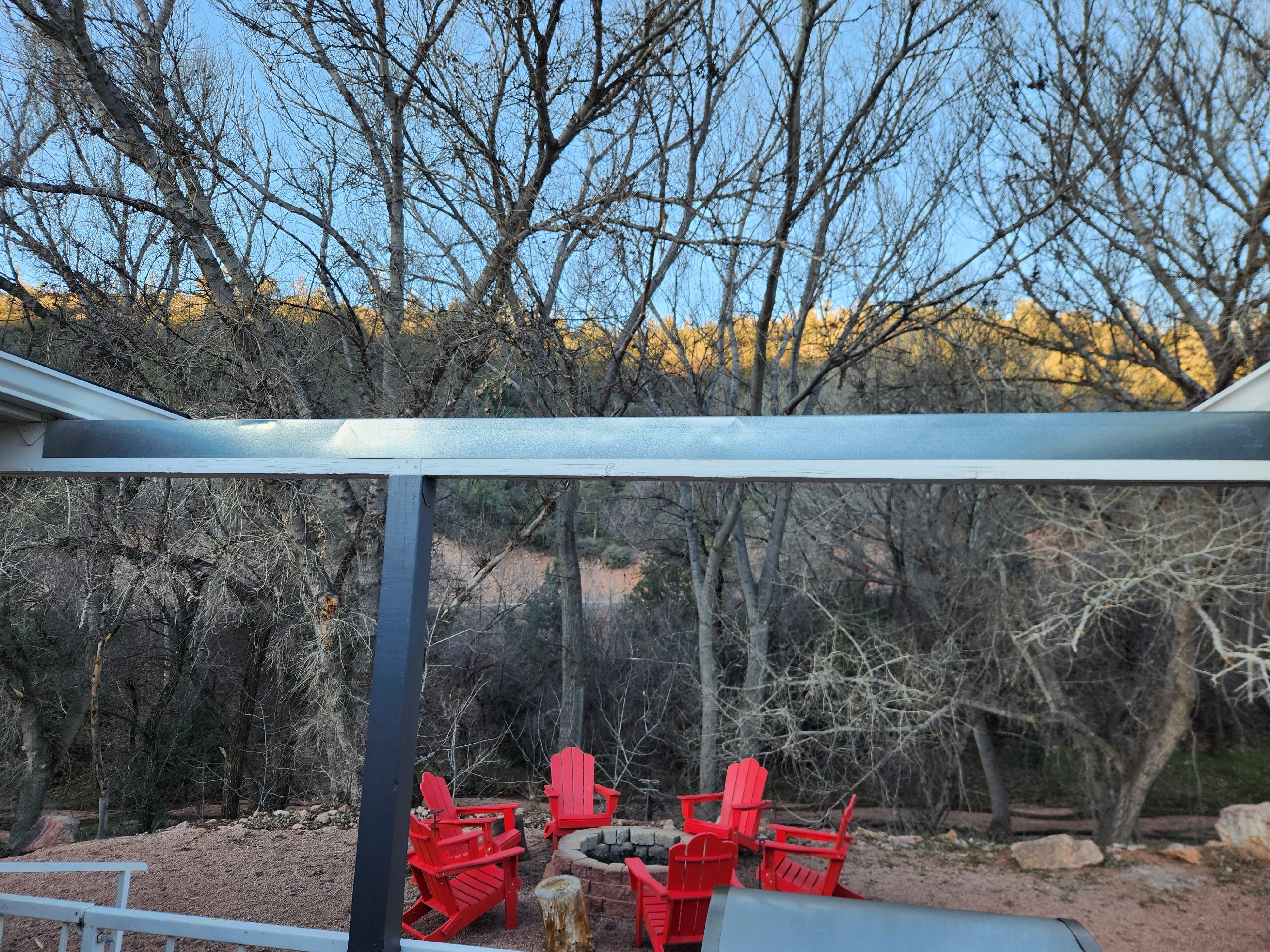 The property is situated on an acre lot with a peaceful creek at the lower portion of the property and is surrounded with trees that span 100 years old. The front yard is fenced and secured for your pets with plenty of space to run and enjoy their pup-cation. Enjoy a cup of coffee on the front patio with stunning mountain views. The extended back patio was designed with our guest in mind. This is the perfect place for entertaining, family dinners or simply to relax and experience Arizona’s natural beauty. We also have an outdoor fire pit for camp fires & roasting S’mores. (Season permitting) The property is equipped to park your rides. There are near by trails that you’ll be able to access with a quick ride up the rim.
