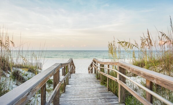 Siamo situati nel punto più stretto dell'isola, quindi letteralmente acqua su entrambi i lati! Siamo un 3 letto, 2 1/2 bagni, 2 soggiorni sulla baia di Little Sabine con un cortile comune in erba verde e moli privati, perfetto per paddle boarding e canottaggio. È così bello, privato e rilassante. Proprio dall'altra parte della strada c'è il bellissimo golfo, a 90 passi dal nostro posto. Il nostro spot sulla spiaggia è prevalentemente privato! Così pacifico! Stare seduti sul nostro balcone con un bicchiere di vino di notte è davvero magico, quindi privato, tranquillo e rilassante. Abbiamo 4 biciclette e 2 tavole Yolo con pagaie per il vostro uso. Il nostro posto ha 2 soggiorni, uno sul lato della baia e uno vicino alla cucina. Così carino! Il master ha 2 letti queen size con il suo bagno privato, doppi lavandini, vasca / doccia. Le altre 2 camere da letto hanno ciascuna una regina e un letto singolo nella stanza. Siamo situati nel punto più perfetto sulla spiaggia, così facile raggiungere così tanti ottimi ristoranti. La pista ciclabile / pedonale è proprio fuori dalla nostra porta ed è così meraviglioso correre, camminare, andare in bicicletta in così tanti posti.